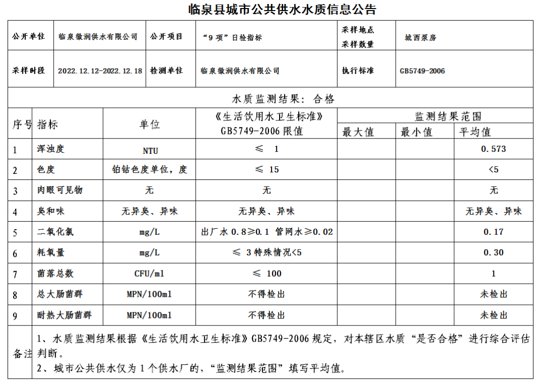 下一条: 2022年12月5日至2022年12月11日临泉县城市公共供水水质信息公告(9项)