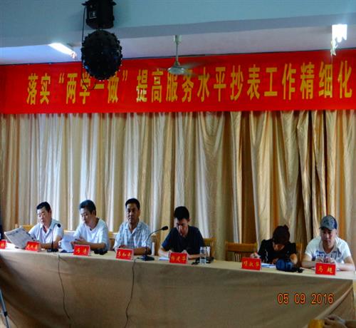 9月5日,临泉县自来水厂召开“落实两学一做,提高服务水平抄表工作精细化管理研讨会”,与会人员围绕发扬宗旨意识做好供水服务这个主题,畅所欲言,各抒己见,献计献策,一致认为作为城市建设的排头兵,要时时牢记宗旨意识,处处发挥模范作用,推动我厂抄表工作实现精细化管理,科学化、规范化管理,促进供水服务水平再上新台阶。