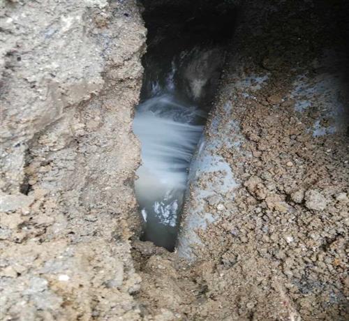 2016年6月5日起,供水调度中心反映园区1#、2#泵房压力异常,特别是园区2#泵压力下降特别明显,怀疑附近有漏点,为尽快查到漏点,杨建华厂长安排韦和平书记带领相关人员到园区排查漏点,因为白天噪声大,不容易发现漏点,6月6日晚上又组织人员夜间查漏,排查了园区2#泵周边的闸阀、下水道还是没有发现漏点。漏点始终无法发现,所有人员的心里都不安稳,尤其是负责查漏的闫成广同志更是寝食不安,6月7日、8日闫成广同志携带专业听漏仪不分昼夜的在园区2#泵周边排查,功夫不负有心人,在8日下午排查到园区2#泵西边的标准厂房时,闫成广发现了异常,查漏仪器传来很响的流水声,经过反复确认,确定了漏点的位置。抢修人员挖开后看到DN150的管道裂开了一个30CM长的大口子,水一直往外流,把旁边的土都冲出一个凹坑,旁边正好有一个下水道,水顺着下水道白白的流走了。按照漏点的大小估计每小时漏水量在50吨左右。