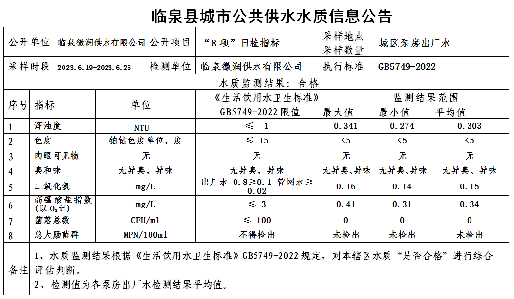 下一条: 临泉县城市公共供水水质信息公告2023年6月(43项)