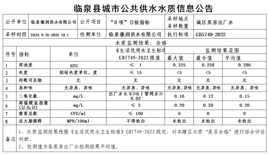 上一条: 临泉县城市公共供水水质信息公告2023年10月2日至2023年10月8日(8项)