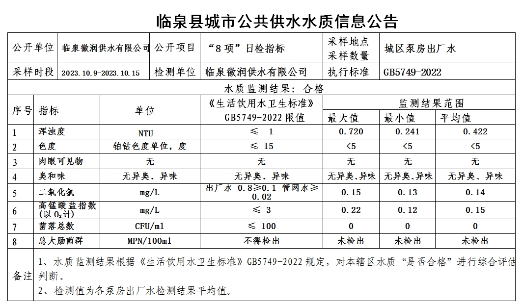 下一条: 临泉县城市公共供水水质信息公告2023年10月2日至2023年10月8日(8项)