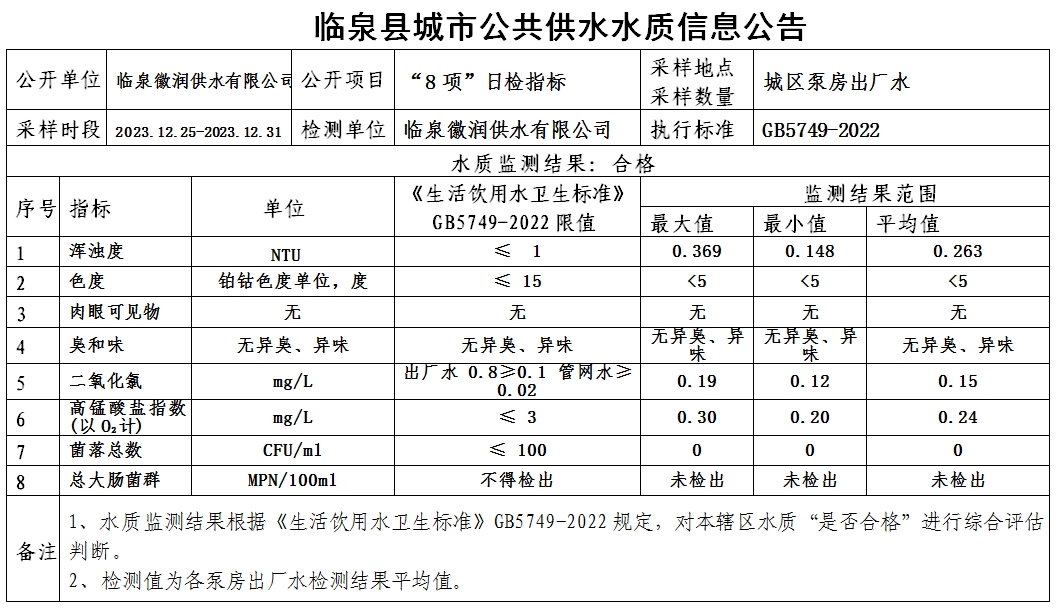 下一条: 临泉县城市公共供水水质信息公告2023年12月(43项)