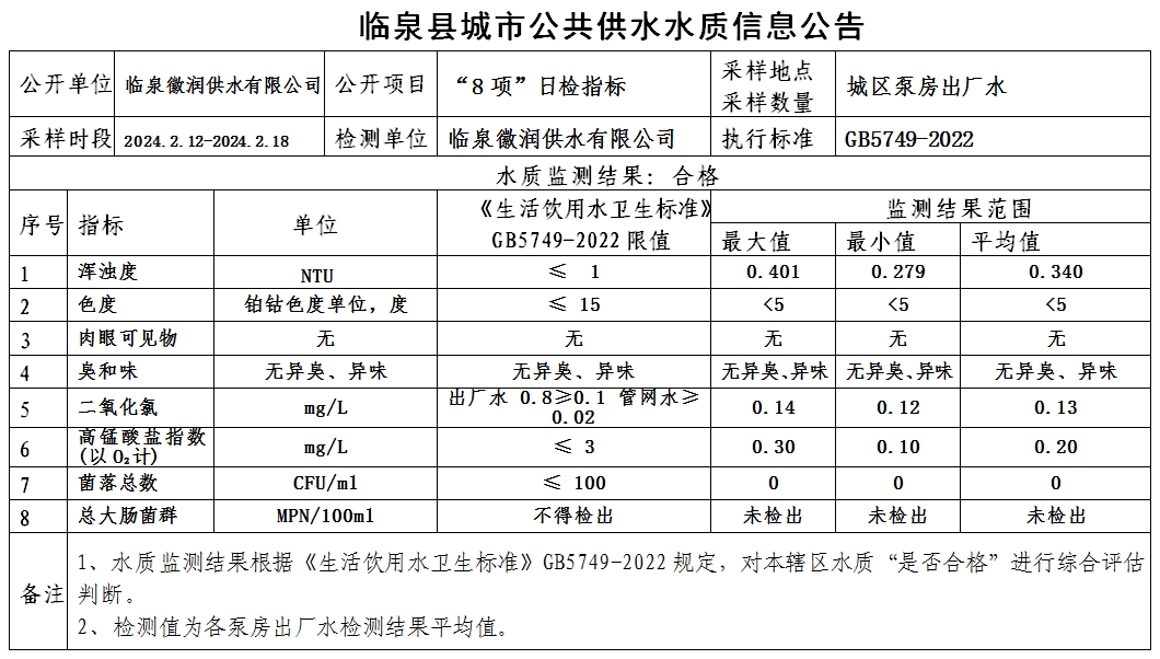 下一条: 临泉县城市公共供水水质信息公告2024年2月上半月(7项)