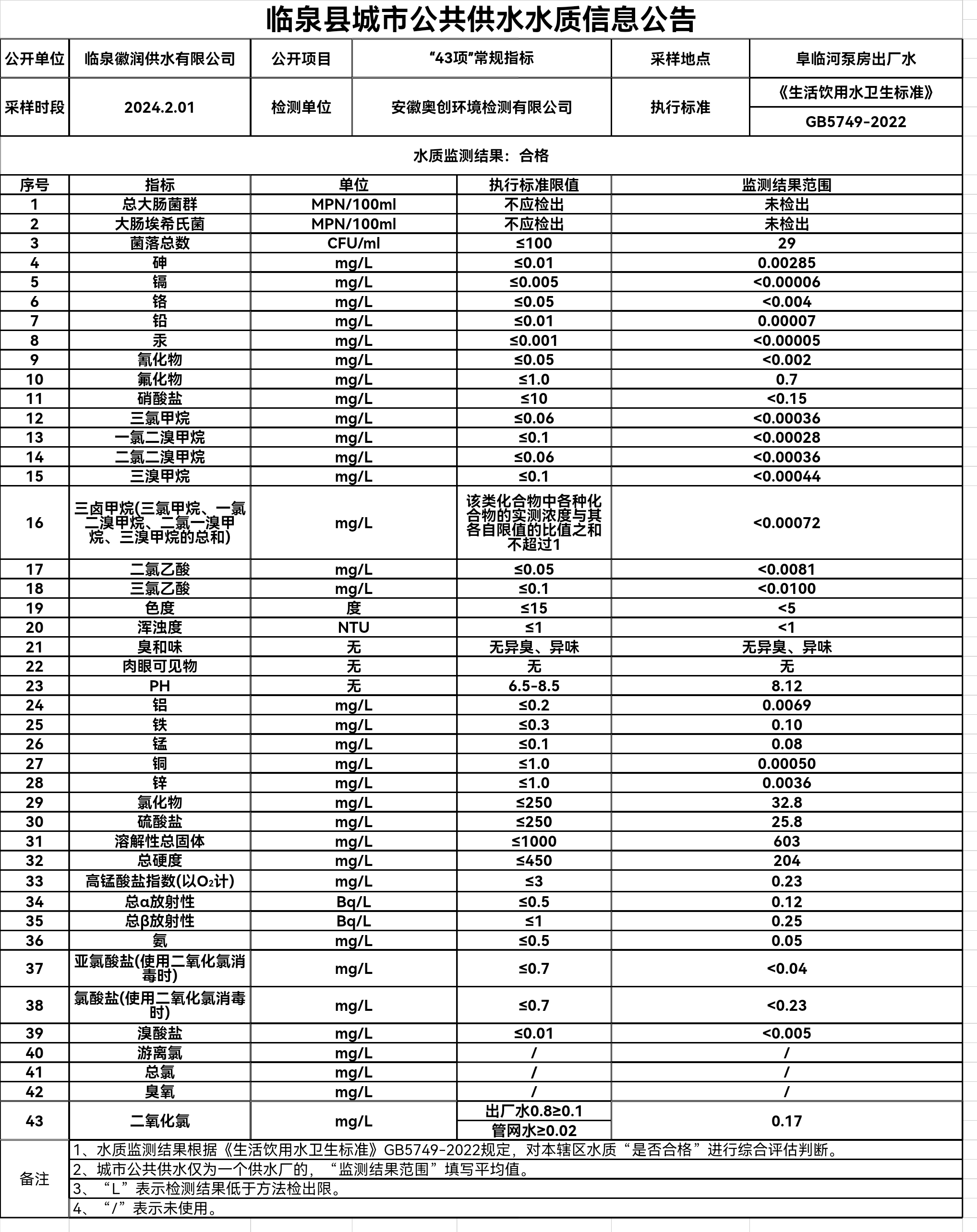 上一条: 临泉县城市公共供水水质信息公告2024年2月19日至2024年2月25日(9项)
