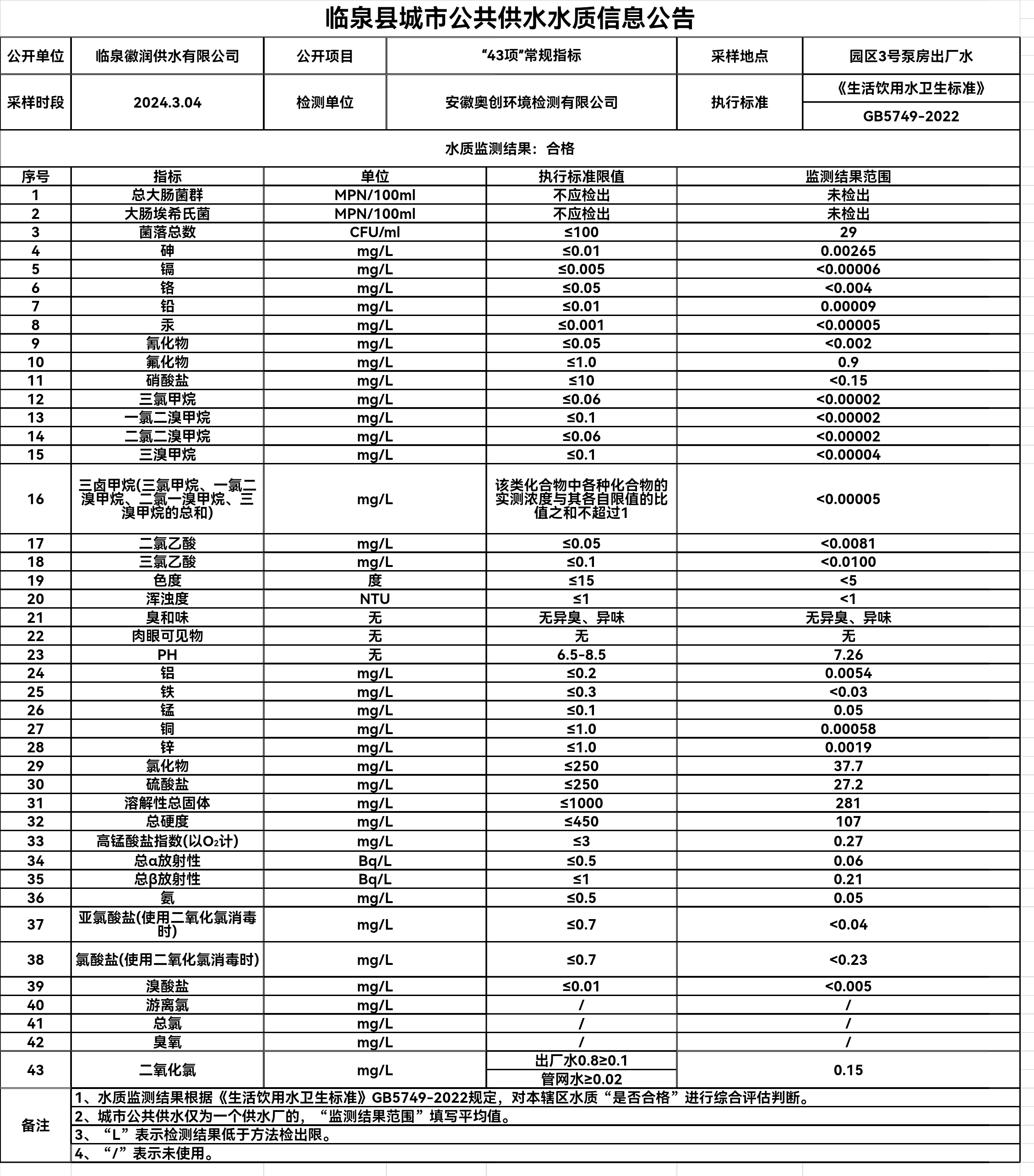 下一条: 临泉县城市公共供水水质信息公告2024年3月上半月(8项)