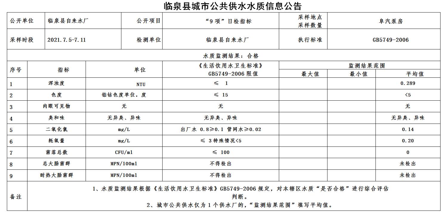 下一条: 2021年6月16日至6月30日临泉县城市公共供水水质信息公告(7项)