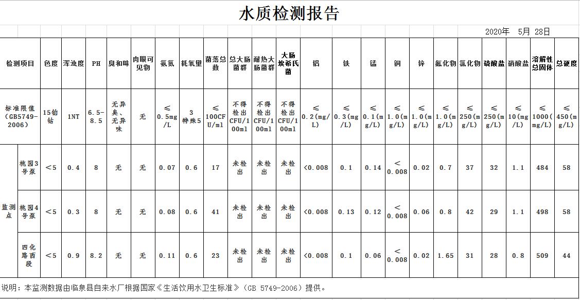 2020年5月水质报告