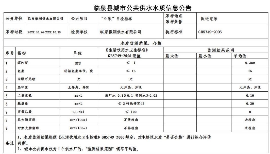 下一条: 2022年10月17日至2022年10月23日临泉县城市公共供水水质信息公告(9项)