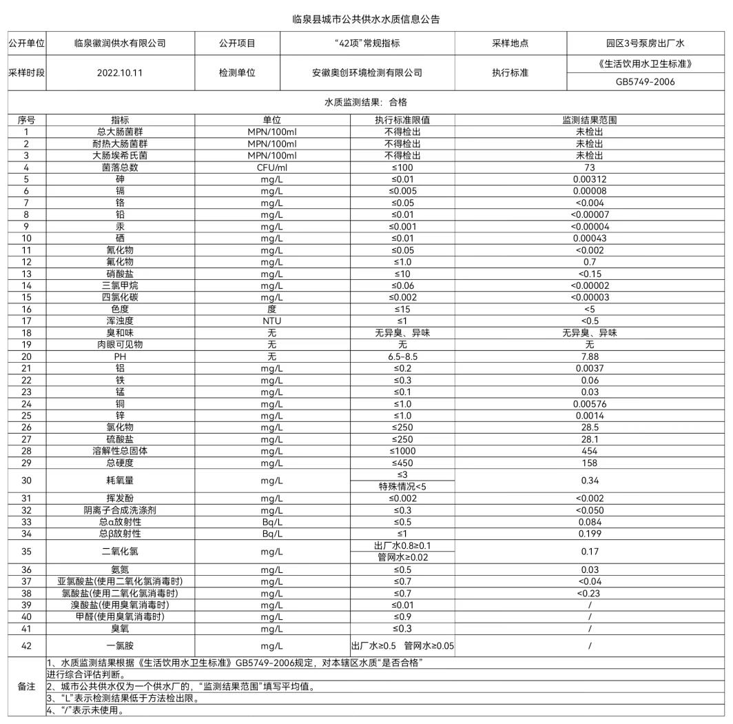 下一条: 2022年10月下半月临泉县城市公共供水水质信息公告(7项)