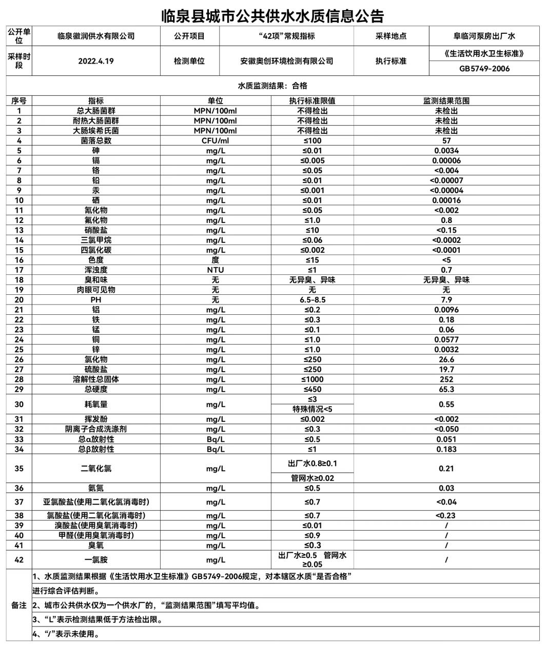 下一条: 2022年1月临泉县城市公共供水水质信息公告(42项)