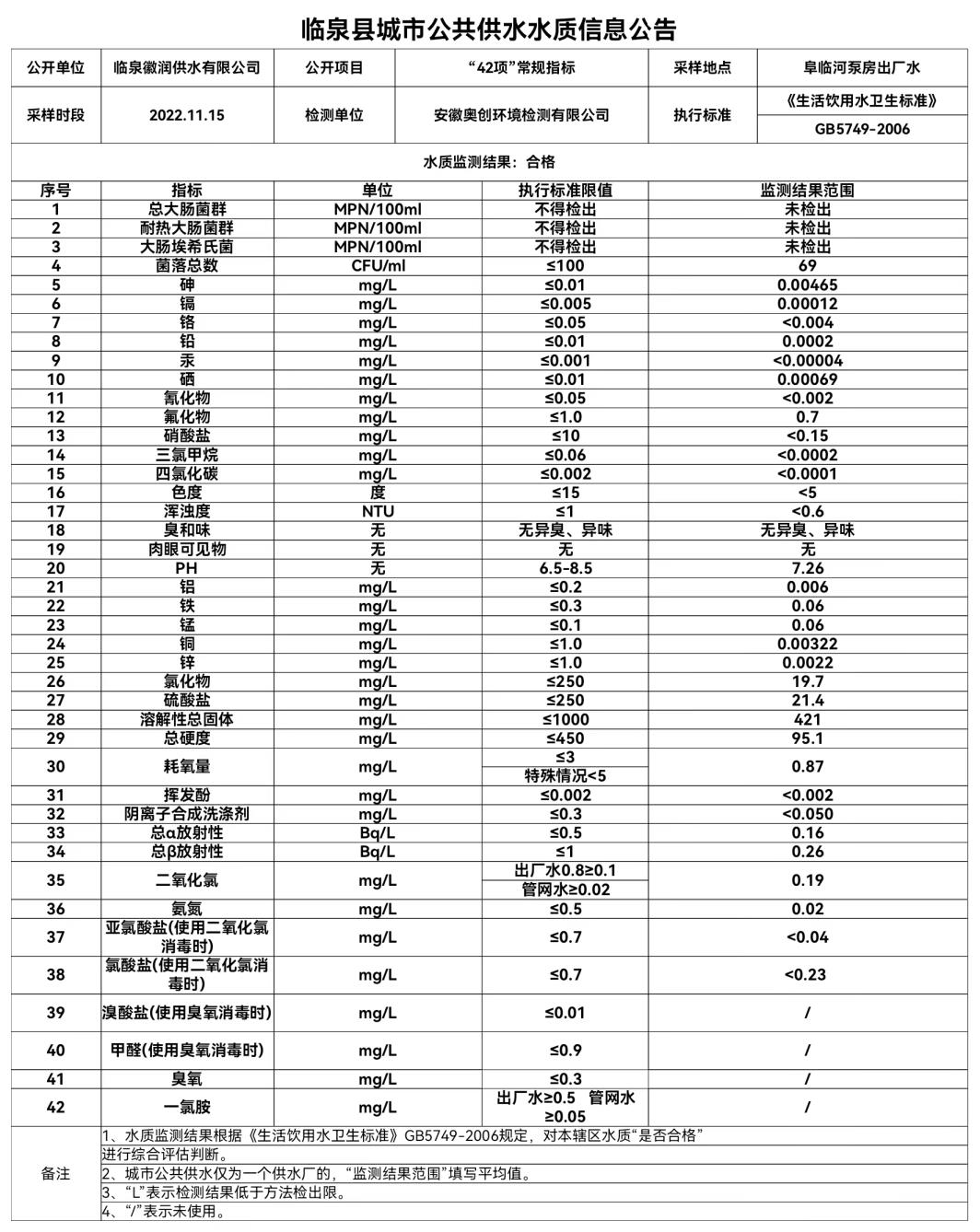上一条: 2022年11月14日至2022年11月20日临泉县城市公共供水水质信息公告(9项)
