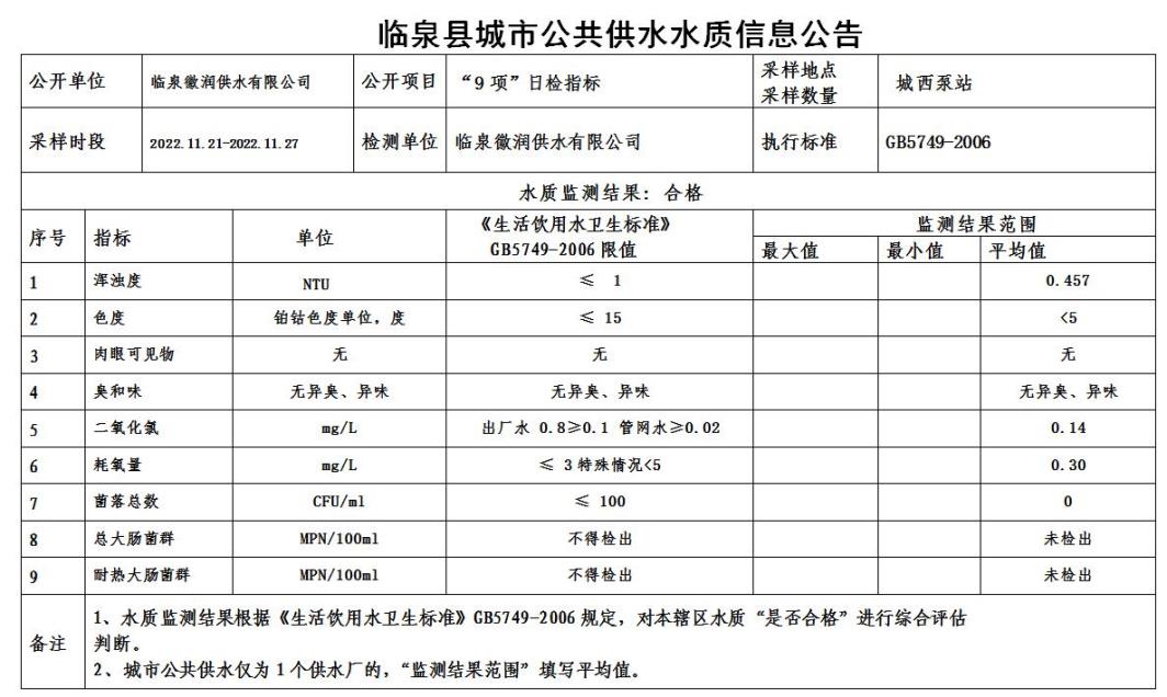 下一条: 2022年11月14日至2022年11月20日临泉县城市公共供水水质信息公告(9项)
