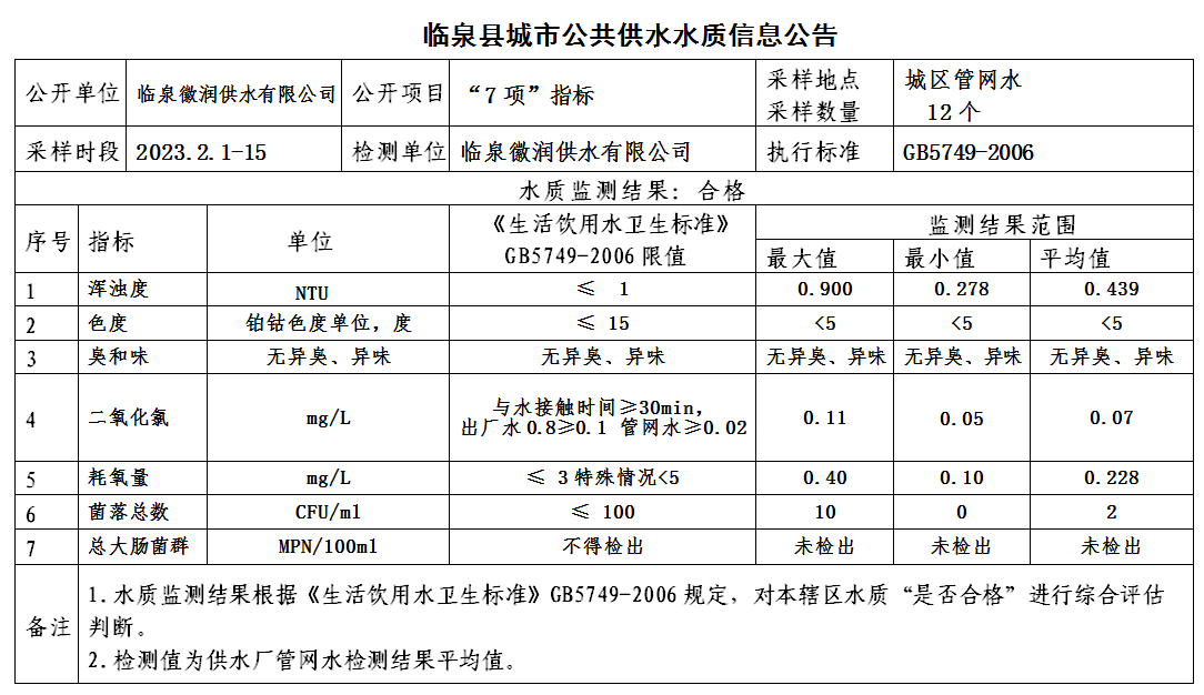 下一条: 临泉县城市公共供水水质信息公告2023年2月6日至2023年2月12日(9项)