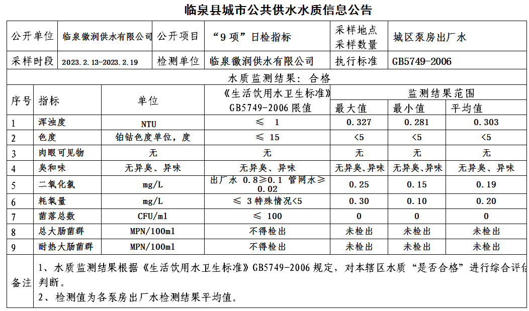 上一条: 临泉县城市公共供水水质信息公告2023年2月20日至2023年2月26日(9项)