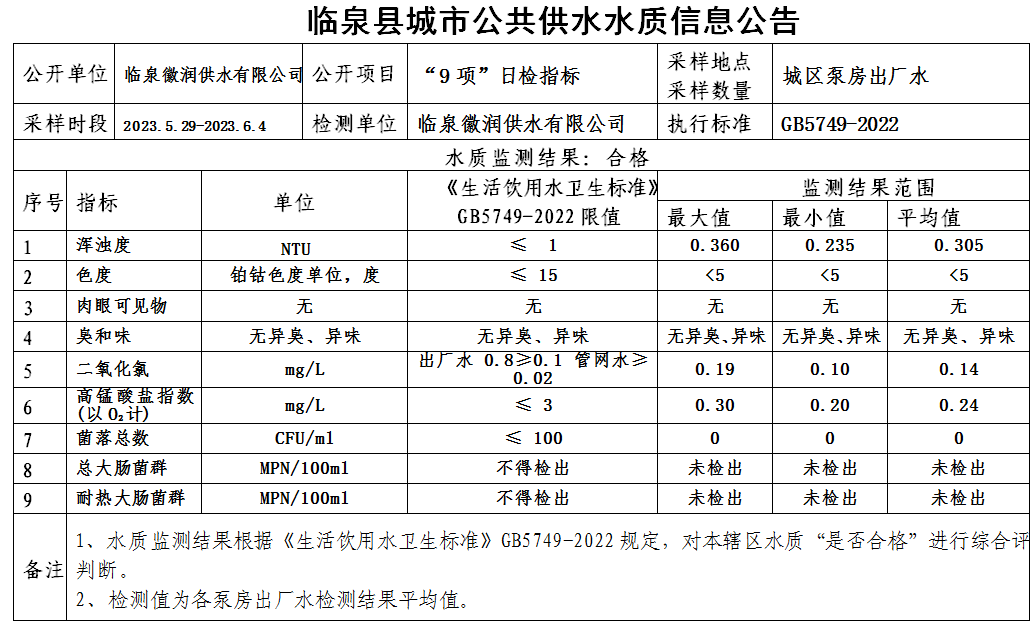 下一条: 临泉县城市公共供水水质信息公告2023年5月22日至2023年5月28日(9项)