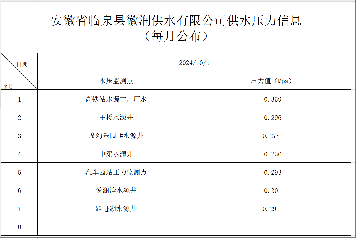 上一条: 临泉徽润供水有限公司供水压力信息(2024年11月份)