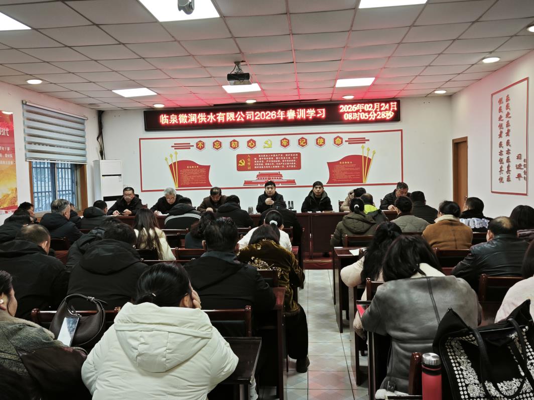 人勤春来早,奋进正当时。为迅速扭转“过年状态”,进入“工作模式”,进一步提升全体干部职工的政治素养与业务能力,2月24日至28日,临泉徽润供水有限公司2026年春训学习在公司二楼会议室正式拉开帷幕,公司领导班子及全体干部职工参加了此次为期五天的集中“充电”。